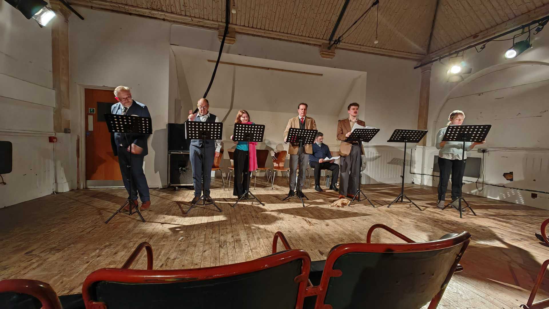 Waters also deserves credit here beyond authorship. Producing a double-bill with tight turnaround, multiple moving parts, and a full company of actors is a genuine undertaking, and this evening had that tell-tale feel of something shepherded with care: clear, coherent, and properly audience-facing. Directed by Rafael Solimeno-Harris, the Fringe Feb versions were delivered in a staged-reading format, yet they consistently played “bigger” than that label suggests. The ensemble approach and confident character work kept the room theatrically alive, and Solimeno-Harris’ choice of music was an understated asset across the evening: used with taste, it helped reset the audience’s emotional ears between scenes, and it neatly underlined the tonal pivots, especially where Waters’ writing shifts from comedy into something sharper-edged.