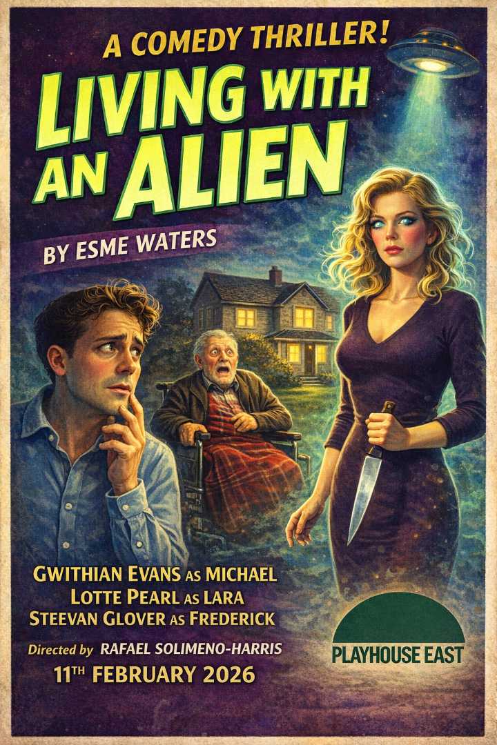 Playhouse East’s inaugural Fringe Feb offered a welcome chance to revisit two Esme Waters plays, Living with an Alien and Mr Thrushby’s Adventure, presented as a single evening double-bill. Both pieces have had recent showings elsewhere, and Theatre Life has already covered them individually. This Fringe Feb pairing, though, was more than a simple re-run: a complete cast change for Living with an Alien and a largely refreshed line-up for Mr Thrushby’s Adventure gave both plays a noticeably different texture, rhythm, and colour. The result felt like a genuine “second look” rather than a repeat.