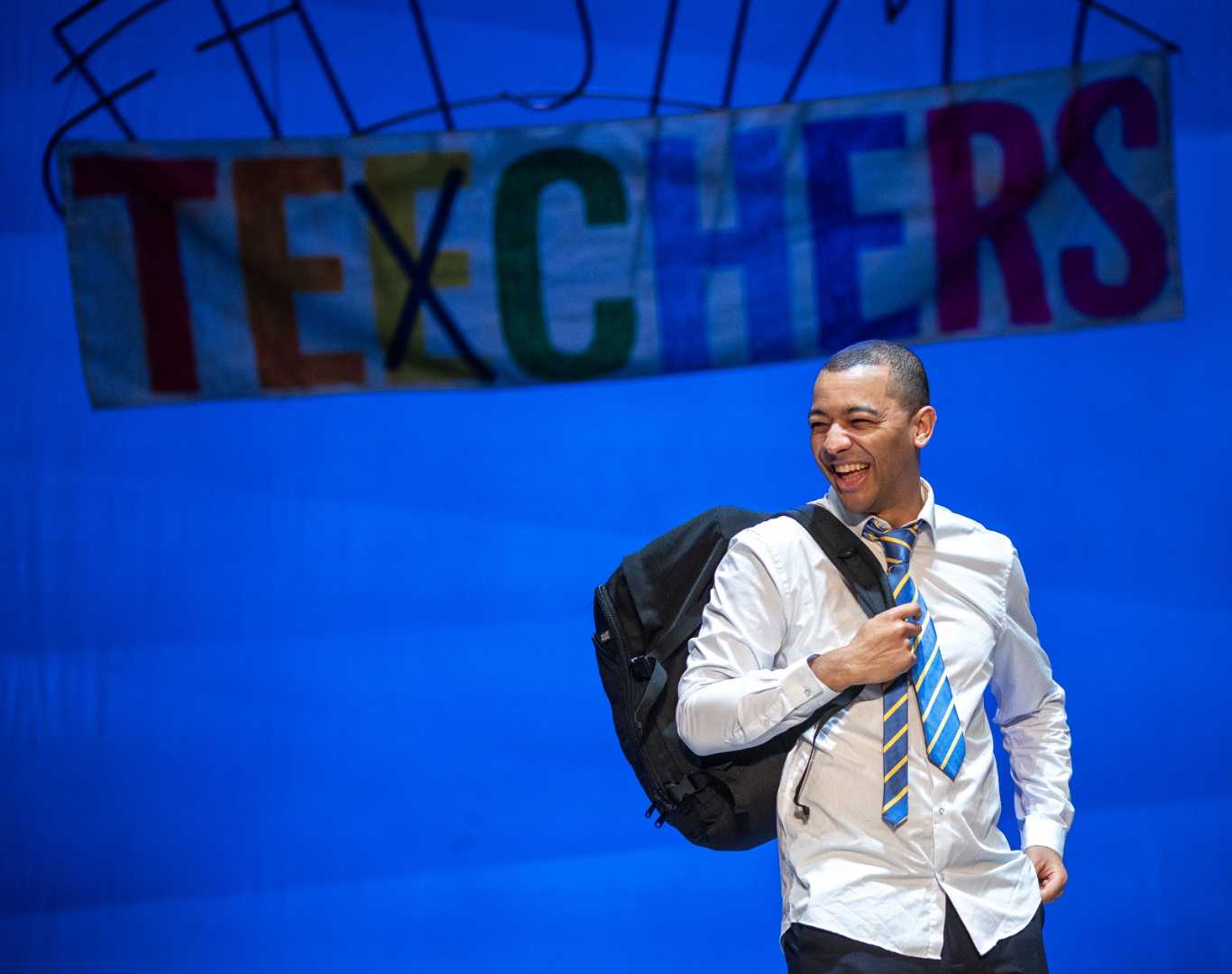 This touring production from The John Godber Company is directed by Jane Thornton, with design by Graham Kirk. Teechers comes with its own built-in stage logic: it’s framed as a school hall performance, it thrives on speed, and it asks the audience to watch the actors create a whole institution with only a few practical cues. When the design follows that logic, the world feels convincingly “school-made”: functional, slightly worn, assembled from what’s to hand, and constantly repurposed. Across the many stagings the play has had, the strongest ones tend to trust that rough-and-ready truthfulness, because it keeps the focus where Godber wants it, on performance, clarity, and the life inside the room.